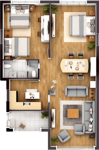 The living room is the heart of the home—a space designed for comfort, relaxation, and gathering. It typically features seating like sofas or armchairs, a coffee table, and often a TV or entertainment unit.